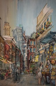Lily Spandorf, Shepherd Market in Mayfair, London, watercolor